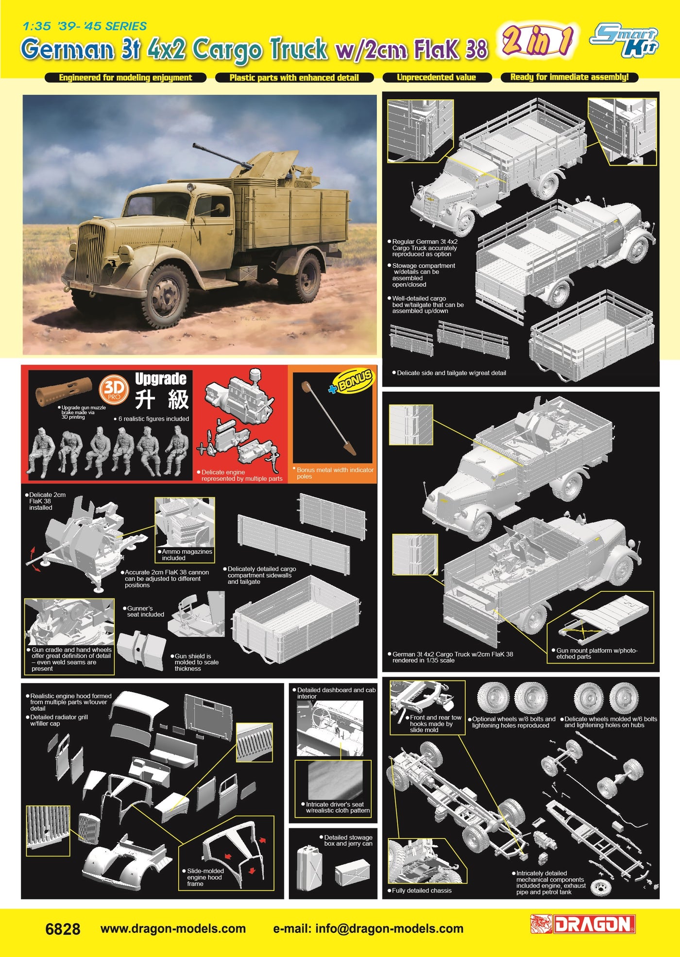 {"id":8589241450744,"title":"1\/35 German 3t 4x2 Cargo Truck w\/2cm FlaK 38 (2 in 1)","handle":"1-35-german-3t-4x2-cargo-truck-w-2cm-flak-38-2-in-1","description":"\u003ch3\u003eDragon 6828 - 1\/35 German 3t 4x2 Cargo Truck w\/2cm FlaK 38 (2 in 1)\u003c\/h3\u003e\n\u003cp\u003eWe will be reissuing our popular 1\/35 scale German 3t 4x2 truck (2-in-1 kit) once again. This cargo truck was widely used during World War II, it provides an exciting opportunity for modelers to create imaginative dioramas. The 2024 reissue will include a figure set featuring a driver and riders. Additionally, the kit will come with metal width indicator poles.\u003c\/p\u003e\n\u003cp\u003eBeing a 2-in-1 kit, modelers will have the option to assemble the truck with a 2cm FlaK 38 anti-aircraft gun mounted in the rear cargo bed. For maximum authenticity of the anti-aircraft gun, a 3D-printed muzzle-brake will also be available. This allows modelers to further detail and upgrade the FlaK 38. \u003c\/p\u003e\n\u003cp\u003eOverall, this reissue of the German 3t 4x2 truck promises to be an exciting release that will cater to a wide range of modelers, from those interested in creating realistic transportation vehicles to those seeking to build engaging diorama scenes.\u003c\/p\u003e\n\u003cp\u003e\u003cspan style=\"color: rgb(43, 0, 255);\"\u003e\u003cstrong\u003eReproduction!\u003c\/strong\u003e\u003c\/span\u003e\u003c\/p\u003e\n\u003cp\u003e\u003cspan style=\"color: #ff2a00;\"\u003e\u003cstrong\u003eLAST ONE\u003c\/strong\u003e\u003c\/span\u003e\u003c\/p\u003e\n\u003cp\u003e\u003cspan style=\"color: rgb(43, 0, 255);\"\u003e\u003cstrong\u003eAvailable on: July 2024\u003c\/strong\u003e\u003c\/span\u003e\u003c\/p\u003e","published_at":"2024-06-11T16:07:51+08:00","created_at":"2024-06-11T16:07:51+08:00","vendor":"Dragon","type":"Military","tags":["1\/35","Brand_Dragon","Dragon","Military","Scale Models","Scale_1\/35","Series_Military Vehicles","Status_In-Stock"],"price":32800,"price_min":32800,"price_max":32800,"available":false,"price_varies":false,"compare_at_price":null,"compare_at_price_min":0,"compare_at_price_max":0,"compare_at_price_varies":false,"variants":[{"id":45315673555192,"title":"Default Title","option1":"Default Title","option2":null,"option3":null,"sku":"DR06828_2024Ver.","requires_shipping":true,"taxable":true,"featured_image":null,"available":false,"name":"1\/35 German 3t 4x2 Cargo Truck w\/2cm FlaK 38 (2 in 1)","public_title":null,"options":["Default Title"],"price":32800,"weight":1500,"compare_at_price":null,"inventory_management":"shopify","barcode":null,"requires_selling_plan":false,"selling_plan_allocations":[]}],"images":["\/\/www.cyber-hobby.com\/cdn\/shop\/files\/6828poster2024.jpg?v=1718093311","\/\/www.cyber-hobby.com\/cdn\/shop\/files\/6828unbox.jpg?v=1722396543"],"featured_image":"\/\/www.cyber-hobby.com\/cdn\/shop\/files\/6828poster2024.jpg?v=1718093311","options":["Title"],"media":[{"alt":null,"id":33916379234552,"position":1,"preview_image":{"aspect_ratio":0.711,"height":2544,"width":1808,"src":"\/\/www.cyber-hobby.com\/cdn\/shop\/files\/6828poster2024.jpg?v=1718093311"},"aspect_ratio":0.711,"height":2544,"media_type":"image","src":"\/\/www.cyber-hobby.com\/cdn\/shop\/files\/6828poster2024.jpg?v=1718093311","width":1808},{"alt":null,"id":34385779327224,"position":2,"preview_image":{"aspect_ratio":1.0,"height":1492,"width":1492,"src":"\/\/www.cyber-hobby.com\/cdn\/shop\/files\/6828unbox.jpg?v=1722396543"},"aspect_ratio":1.0,"height":1492,"media_type":"image","src":"\/\/www.cyber-hobby.com\/cdn\/shop\/files\/6828unbox.jpg?v=1722396543","width":1492}],"requires_selling_plan":false,"selling_plan_groups":[],"content":"\u003ch3\u003eDragon 6828 - 1\/35 German 3t 4x2 Cargo Truck w\/2cm FlaK 38 (2 in 1)\u003c\/h3\u003e\n\u003cp\u003eWe will be reissuing our popular 1\/35 scale German 3t 4x2 truck (2-in-1 kit) once again. This cargo truck was widely used during World War II, it provides an exciting opportunity for modelers to create imaginative dioramas. The 2024 reissue will include a figure set featuring a driver and riders. Additionally, the kit will come with metal width indicator poles.\u003c\/p\u003e\n\u003cp\u003eBeing a 2-in-1 kit, modelers will have the option to assemble the truck with a 2cm FlaK 38 anti-aircraft gun mounted in the rear cargo bed. For maximum authenticity of the anti-aircraft gun, a 3D-printed muzzle-brake will also be available. This allows modelers to further detail and upgrade the FlaK 38. \u003c\/p\u003e\n\u003cp\u003eOverall, this reissue of the German 3t 4x2 truck promises to be an exciting release that will cater to a wide range of modelers, from those interested in creating realistic transportation vehicles to those seeking to build engaging diorama scenes.\u003c\/p\u003e\n\u003cp\u003e\u003cspan style=\"color: rgb(43, 0, 255);\"\u003e\u003cstrong\u003eReproduction!\u003c\/strong\u003e\u003c\/span\u003e\u003c\/p\u003e\n\u003cp\u003e\u003cspan style=\"color: #ff2a00;\"\u003e\u003cstrong\u003eLAST ONE\u003c\/strong\u003e\u003c\/span\u003e\u003c\/p\u003e\n\u003cp\u003e\u003cspan style=\"color: rgb(43, 0, 255);\"\u003e\u003cstrong\u003eAvailable on: July 2024\u003c\/strong\u003e\u003c\/span\u003e\u003c\/p\u003e"}