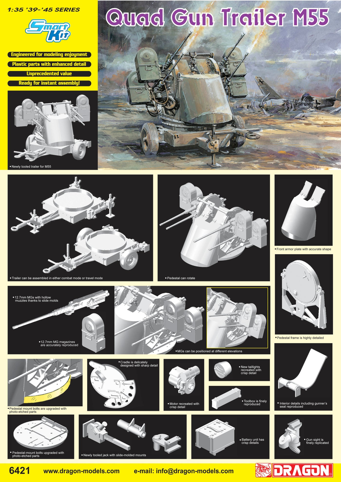 {"id":8419087876344,"title":"1\/35 Quad Gun Trailer M55","handle":"1-35-quad-gun-trailer-m55","description":"\u003ch3\u003eDragon 6421 - 1\/35 Quad Gun Trailer M55\u003c\/h3\u003e\n\u003cp\u003eThe M55 Quad Gun Trailer is a rare anti-aircraft gun from the Allied forces in our product line. With meticulous engineering and design, it has been faithfully reproduced with accurate details. It is another highly anticipated item, considering its last release was a decade ago. Now, it presents a great opportunity for modelers to acquire it and enhance their collections.\u003c\/p\u003e\n\u003cp\u003e\u003cspan style=\"color: #ff2a00;\"\u003e\u003cstrong\u003eIn Stock Now!\u003c\/strong\u003e\u003c\/span\u003e\u003c\/p\u003e\n\u003cp\u003e\u003cspan style=\"color: #2b00ff;\"\u003e\u003cstrong\u003eAvailable on May 2024\u003c\/strong\u003e\u003c\/span\u003e\u003c\/p\u003e","published_at":"2024-04-17T17:58:15+08:00","created_at":"2024-04-17T17:58:15+08:00","vendor":"Dragon","type":"Military","tags":["1\/35","Brand_Dragon","Dragon","Military","Scale Models","Scale_1\/35","Series_Military Vehicles","Status_Out of Stock"],"price":16800,"price_min":16800,"price_max":16800,"available":false,"price_varies":false,"compare_at_price":null,"compare_at_price_min":0,"compare_at_price_max":0,"compare_at_price_varies":false,"variants":[{"id":44920792121592,"title":"Default Title","option1":"Default Title","option2":null,"option3":null,"sku":"DR06421","requires_shipping":true,"taxable":true,"featured_image":null,"available":false,"name":"1\/35 Quad Gun Trailer M55","public_title":null,"options":["Default Title"],"price":16800,"weight":1000,"compare_at_price":null,"inventory_management":"shopify","barcode":null,"requires_selling_plan":false,"selling_plan_allocations":[]}],"images":["\/\/www.cyber-hobby.com\/cdn\/shop\/files\/6421poster_D_L.jpg?v=1713348026"],"featured_image":"\/\/www.cyber-hobby.com\/cdn\/shop\/files\/6421poster_D_L.jpg?v=1713348026","options":["Title"],"media":[{"alt":null,"id":33282015101176,"position":1,"preview_image":{"aspect_ratio":0.707,"height":4961,"width":3508,"src":"\/\/www.cyber-hobby.com\/cdn\/shop\/files\/6421poster_D_L.jpg?v=1713348026"},"aspect_ratio":0.707,"height":4961,"media_type":"image","src":"\/\/www.cyber-hobby.com\/cdn\/shop\/files\/6421poster_D_L.jpg?v=1713348026","width":3508}],"requires_selling_plan":false,"selling_plan_groups":[],"content":"\u003ch3\u003eDragon 6421 - 1\/35 Quad Gun Trailer M55\u003c\/h3\u003e\n\u003cp\u003eThe M55 Quad Gun Trailer is a rare anti-aircraft gun from the Allied forces in our product line. With meticulous engineering and design, it has been faithfully reproduced with accurate details. It is another highly anticipated item, considering its last release was a decade ago. Now, it presents a great opportunity for modelers to acquire it and enhance their collections.\u003c\/p\u003e\n\u003cp\u003e\u003cspan style=\"color: #ff2a00;\"\u003e\u003cstrong\u003eIn Stock Now!\u003c\/strong\u003e\u003c\/span\u003e\u003c\/p\u003e\n\u003cp\u003e\u003cspan style=\"color: #2b00ff;\"\u003e\u003cstrong\u003eAvailable on May 2024\u003c\/strong\u003e\u003c\/span\u003e\u003c\/p\u003e"}