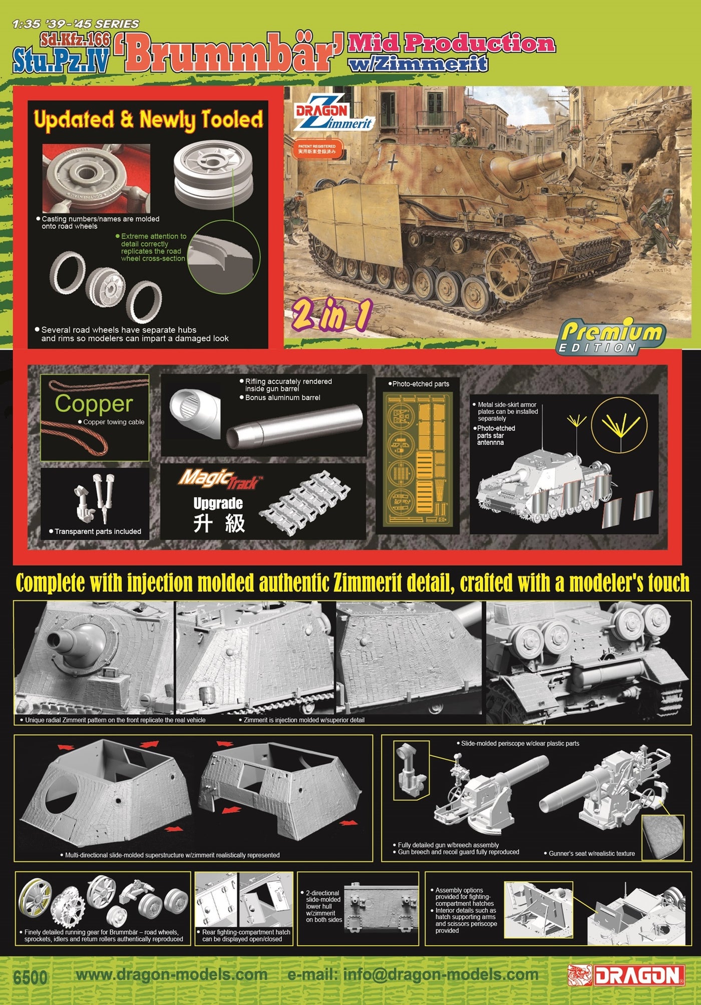 {"id":9190823526648,"title":"1\/35 Sd.Kfz.166 Stu.Pz.IV \"Brummbar\" Mid Production w\/Zimmerit","handle":"1-35-sd-kfz-166-stu-pz-iv-brummbar-mid-production-w-zimmerit","description":"\u003ch3\u003eDragon 6500 - 1\/35 Sd.Kfz.166 Stu.Pz.IV \"Brummbar\" Mid Production w\/Zimmerit\u003c\/h3\u003e\n\u003cp\u003eBeware of the Bears! A pair of Sd.Kfz.166 Stu.Pz.IV “Brummbar” (Growling Bear) models kits will soon be emerging once again. These highly detailed kits have been significantly upgraded with Magic Tracks, aluminum gun barrel with rifling, and updated road wheels for superior realism. Notably, both models have Zimmerit anti-magnetic paste coating molded, an advanced feature still unmatched by other kits. As legendary assault guns, these “Brummbär” are a must-have. Secure yours now before they vanish!\u003cbr\u003e\u003c\/p\u003e\n\u003cp\u003e\u003cspan style=\"color: rgb(255, 42, 0);\"\u003e\u003cstrong\u003ePre-Order Now!\u003c\/strong\u003e\u003c\/span\u003e\u003c\/p\u003e\n\u003cp\u003e\u003cspan style=\"color: rgb(43, 0, 255);\"\u003e\u003cstrong\u003eEst. Available on Nov 2025\u003c\/strong\u003e\u003c\/span\u003e\u003c\/p\u003e","published_at":"2025-08-29T14:48:38+08:00","created_at":"2025-08-29T14:48:38+08:00","vendor":"Dragon","type":"Military","tags":["1\/35","Brand_Dragon","Dragon","Military","Scale Models","Scale_1\/35","Series_Military Vehicles","Status_Pre-order"],"price":39800,"price_min":39800,"price_max":39800,"available":true,"price_varies":false,"compare_at_price":null,"compare_at_price_min":0,"compare_at_price_max":0,"compare_at_price_varies":false,"variants":[{"id":46748044951800,"title":"Default Title","option1":"Default Title","option2":null,"option3":null,"sku":"DR06500_2025Ver.","requires_shipping":true,"taxable":true,"featured_image":null,"available":true,"name":"1\/35 Sd.Kfz.166 Stu.Pz.IV \"Brummbar\" Mid Production w\/Zimmerit","public_title":null,"options":["Default Title"],"price":39800,"weight":1600,"compare_at_price":null,"inventory_management":"shopify","barcode":null,"requires_selling_plan":false,"selling_plan_allocations":[]}],"images":["\/\/www.cyber-hobby.com\/cdn\/shop\/files\/6500poster2025.jpg?v=1756450481"],"featured_image":"\/\/www.cyber-hobby.com\/cdn\/shop\/files\/6500poster2025.jpg?v=1756450481","options":["Title"],"media":[{"alt":null,"id":37603732652280,"position":1,"preview_image":{"aspect_ratio":0.698,"height":2148,"width":1500,"src":"\/\/www.cyber-hobby.com\/cdn\/shop\/files\/6500poster2025.jpg?v=1756450481"},"aspect_ratio":0.698,"height":2148,"media_type":"image","src":"\/\/www.cyber-hobby.com\/cdn\/shop\/files\/6500poster2025.jpg?v=1756450481","width":1500}],"requires_selling_plan":false,"selling_plan_groups":[],"content":"\u003ch3\u003eDragon 6500 - 1\/35 Sd.Kfz.166 Stu.Pz.IV \"Brummbar\" Mid Production w\/Zimmerit\u003c\/h3\u003e\n\u003cp\u003eBeware of the Bears! A pair of Sd.Kfz.166 Stu.Pz.IV “Brummbar” (Growling Bear) models kits will soon be emerging once again. These highly detailed kits have been significantly upgraded with Magic Tracks, aluminum gun barrel with rifling, and updated road wheels for superior realism. Notably, both models have Zimmerit anti-magnetic paste coating molded, an advanced feature still unmatched by other kits. As legendary assault guns, these “Brummbär” are a must-have. Secure yours now before they vanish!\u003cbr\u003e\u003c\/p\u003e\n\u003cp\u003e\u003cspan style=\"color: rgb(255, 42, 0);\"\u003e\u003cstrong\u003ePre-Order Now!\u003c\/strong\u003e\u003c\/span\u003e\u003c\/p\u003e\n\u003cp\u003e\u003cspan style=\"color: rgb(43, 0, 255);\"\u003e\u003cstrong\u003eEst. Available on Nov 2025\u003c\/strong\u003e\u003c\/span\u003e\u003c\/p\u003e"}