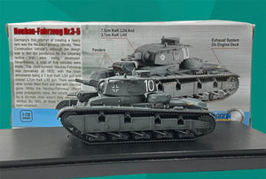{"id":4348531474510,"title":"1\/72 Neubau-Fahrzeung Nr.3-5, Versuchsfahrzeuge, Germany 1940","handle":"1-72-neubau-fahrzeung-nr-3-5-versuchsfahrzeuge-germany-1940","description":"\u003ch3\u003eDragon Armor 60597 - 1\/72 Neubau-Fahrzeung Nr.3-5, Versuchsfahrzeuge, Germany 1940\u003c\/h3\u003e\n\u003cp\u003eGermany’s first attempts at creating a heavy tank commenced in the early 1930s with a design known as the Neubaufahrzeug (“New Construction Vehicle”). It was not a success, however. Slow-moving and boasting multiple turrets, it was ill equipped for the type of rapid, mobile warfare that Blitzkrieg tactics required. For this reason, only five Neubau-Fahrzeug heavy tanks were ever built, the first two of which were prototypes. However, the three 25.8-ton series-production tanks (Numbers 3-5) that had been manufactured in 1935-36 participated in the 1940 invasion of Norway. They were deployed within a specially formed Panzerabteilung called Pz.Abt.z.b.V.40, but this was the extent of their wartime combat involvement. Their armament included a 7.5cm KwK L\/24 main gun, 3.7cm KwK L\/45 cannon and two 7.92mm machine guns.\u003c\/p\u003e\n\u003cp\u003eDragon Armor is offering an impressive 1\/72 scale model representing the production tanks. Utilizing research and molds from the previously released plastic kit, this miniature Neubau-Fahrzeug Nr.3-5 is impressive in its early-war camouflage color of panzer gray (dunkelgrau). The camouflage scheme is enhanced with white balkenkreuze markings as well as a distinctive number ‘10’ on the rear of the main turret. This is a fine rendering of the NbFz, and it adds to the Dragon Armor items already available.\u003c\/p\u003e","published_at":"2019-11-07T15:14:57+08:00","created_at":"2019-11-07T15:28:22+08:00","vendor":"Dragon","type":"Military","tags":["1\/72","armor","Brand_Dragon","Completed Models","Dragon","dragon armor","Military","Scale Models","Scale_1\/72","Series_Military Vehicles","Status_Out of Stock"],"price":28800,"price_min":28800,"price_max":28800,"available":false,"price_varies":false,"compare_at_price":null,"compare_at_price_min":0,"compare_at_price_max":0,"compare_at_price_varies":false,"variants":[{"id":31156250542158,"title":"Default Title","option1":"Default Title","option2":null,"option3":null,"sku":"DR60597","requires_shipping":true,"taxable":true,"featured_image":null,"available":false,"name":"1\/72 Neubau-Fahrzeung Nr.3-5, Versuchsfahrzeuge, Germany 1940","public_title":null,"options":["Default Title"],"price":28800,"weight":500,"compare_at_price":null,"inventory_management":"shopify","barcode":"","requires_selling_plan":false,"selling_plan_allocations":[]}],"images":["\/\/www.cyber-hobby.com\/cdn\/shop\/products\/DR60597.jpg?v=1573111702","\/\/www.cyber-hobby.com\/cdn\/shop\/products\/60597_1.jpg?v=1654153605","\/\/www.cyber-hobby.com\/cdn\/shop\/products\/60597_2.jpg?v=1654153605","\/\/www.cyber-hobby.com\/cdn\/shop\/products\/60597_3.jpg?v=1654153604","\/\/www.cyber-hobby.com\/cdn\/shop\/products\/60597_4.jpg?v=1654153606","\/\/www.cyber-hobby.com\/cdn\/shop\/products\/60597_5.jpg?v=1654153605"],"featured_image":"\/\/www.cyber-hobby.com\/cdn\/shop\/products\/DR60597.jpg?v=1573111702","options":["Title"],"media":[{"alt":null,"id":5604904861774,"position":1,"preview_image":{"aspect_ratio":1.809,"height":372,"width":673,"src":"\/\/www.cyber-hobby.com\/cdn\/shop\/products\/DR60597.jpg?v=1573111702"},"aspect_ratio":1.809,"height":372,"media_type":"image","src":"\/\/www.cyber-hobby.com\/cdn\/shop\/products\/DR60597.jpg?v=1573111702","width":673},{"alt":null,"id":30012387098872,"position":2,"preview_image":{"aspect_ratio":1.484,"height":690,"width":1024,"src":"\/\/www.cyber-hobby.com\/cdn\/shop\/products\/60597_1.jpg?v=1654153605"},"aspect_ratio":1.484,"height":690,"media_type":"image","src":"\/\/www.cyber-hobby.com\/cdn\/shop\/products\/60597_1.jpg?v=1654153605","width":1024},{"alt":null,"id":30012387131640,"position":3,"preview_image":{"aspect_ratio":1.488,"height":688,"width":1024,"src":"\/\/www.cyber-hobby.com\/cdn\/shop\/products\/60597_2.jpg?v=1654153605"},"aspect_ratio":1.488,"height":688,"media_type":"image","src":"\/\/www.cyber-hobby.com\/cdn\/shop\/products\/60597_2.jpg?v=1654153605","width":1024},{"alt":null,"id":30012387164408,"position":4,"preview_image":{"aspect_ratio":1.491,"height":687,"width":1024,"src":"\/\/www.cyber-hobby.com\/cdn\/shop\/products\/60597_3.jpg?v=1654153604"},"aspect_ratio":1.491,"height":687,"media_type":"image","src":"\/\/www.cyber-hobby.com\/cdn\/shop\/products\/60597_3.jpg?v=1654153604","width":1024},{"alt":null,"id":30012387197176,"position":5,"preview_image":{"aspect_ratio":1.488,"height":688,"width":1024,"src":"\/\/www.cyber-hobby.com\/cdn\/shop\/products\/60597_4.jpg?v=1654153606"},"aspect_ratio":1.488,"height":688,"media_type":"image","src":"\/\/www.cyber-hobby.com\/cdn\/shop\/products\/60597_4.jpg?v=1654153606","width":1024},{"alt":null,"id":30012387229944,"position":6,"preview_image":{"aspect_ratio":1.465,"height":699,"width":1024,"src":"\/\/www.cyber-hobby.com\/cdn\/shop\/products\/60597_5.jpg?v=1654153605"},"aspect_ratio":1.465,"height":699,"media_type":"image","src":"\/\/www.cyber-hobby.com\/cdn\/shop\/products\/60597_5.jpg?v=1654153605","width":1024}],"requires_selling_plan":false,"selling_plan_groups":[],"content":"\u003ch3\u003eDragon Armor 60597 - 1\/72 Neubau-Fahrzeung Nr.3-5, Versuchsfahrzeuge, Germany 1940\u003c\/h3\u003e\n\u003cp\u003eGermany’s first attempts at creating a heavy tank commenced in the early 1930s with a design known as the Neubaufahrzeug (“New Construction Vehicle”). It was not a success, however. Slow-moving and boasting multiple turrets, it was ill equipped for the type of rapid, mobile warfare that Blitzkrieg tactics required. For this reason, only five Neubau-Fahrzeug heavy tanks were ever built, the first two of which were prototypes. However, the three 25.8-ton series-production tanks (Numbers 3-5) that had been manufactured in 1935-36 parti