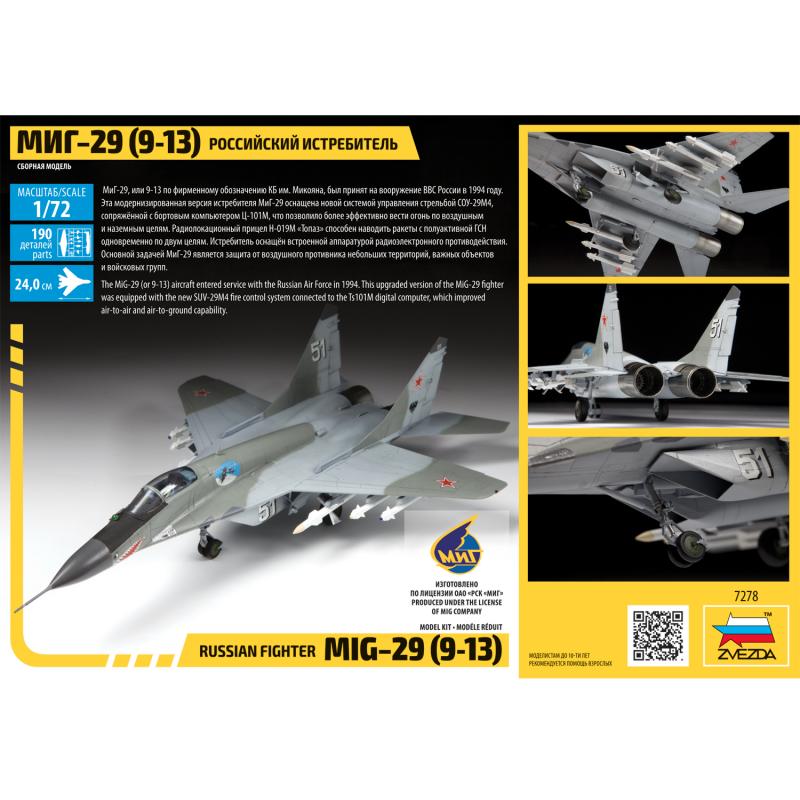 {"id":6945446002882,"title":"1\/72 Russian fighter MiG-29 (9-13)","handle":"1-72-russian-fighter-mig-29-9-13","description":"\u003ch3\u003eZvezda 7278 - 1\/72 Russian fighter MiG-29 (9-13)\u003c\/h3\u003e\n\u003cp\u003eThe MiG-29S (or 9-13S) aircraft entered service with the Russian Air Force in 1994. This upgraded version of the MiG-29 fighter was equipped with the new SUV- 29M4 fire control system connected to the Ts101M digital computer, which improved air- to-air and air-to- ground capability.\u003c\/p\u003e\n\u003cp\u003e\u003cspan style=\"color: #ff2a00;\"\u003e\u003cstrong\u003eOut of Stock\u003c\/strong\u003e\u003c\/span\u003e\u003c\/p\u003e\n\u003cp\u003e\u003cspan style=\"color: #ff2a00;\"\u003e\u003cstrong\u003eAvailable: October 2021\u003c\/strong\u003e\u003c\/span\u003e\u003c\/p\u003e","published_at":"2021-08-26T13:39:04+08:00","created_at":"2021-08-26T13:39:05+08:00","vendor":"Zvezda","type":"Scale Models","tags":["1\/72","Aircraft","Brand_Zvezda","Military","Scale Models","Scale_1\/72","Series_Aircraft","Status_Out of Stock","Zvezda"],"price":18800,"price_min":18800,"price_max":18800,"available":false,"price_varies":false,"compare_at_price":null,"compare_at_price_min":0,"compare_at_price_max":0,"compare_at_price_varies":false,"variants":[{"id":40704661258434,"title":"Default Title","option1":"Default Title","option2":null,"option3":null,"sku":"ZV07278","requires_shipping":true,"taxable":true,"featured_image":null,"available":false,"name":"1\/72 Russian fighter MiG-29 (9-13)","public_title":null,"options":["Default Title"],"price":18800,"weight":1000,"compare_at_price":null,"inventory_management":"shopify","barcode":"","requires_selling_plan":false,"selling_plan_allocations":[]}],"images":["\/\/www.cyber-hobby.com\/cdn\/shop\/products\/ZV07278_1.jpg?v=1629956398","\/\/www.cyber-hobby.com\/cdn\/shop\/products\/ZV07278_6.jpg?v=1629956403","\/\/www.cyber-hobby.com\/cdn\/shop\/products\/ZV07278_7.jpg?v=1629956403","\/\/www.cyber-hobby.com\/cdn\/shop\/products\/ZV07278_2.jpg?v=1629956403","\/\/www.cyber-hobby.com\/cdn\/shop\/products\/ZV07278_3.jpg?v=1629956403","\/\/www.cyber-hobby.com\/cdn\/shop\/products\/ZV07278_4.jpg?v=1629956403","\/\/www.cyber-hobby.com\/cdn\/shop\/products\/ZV07278_5.jpg?v=1629956403","\/\/www.cyber-hobby.com\/cdn\/shop\/products\/ZV07278_8.jpg?v=1629956400","\/\/www.cyber-hobby.com\/cdn\/shop\/products\/ZV07278_9.jpg?v=1629956400","\/\/www.cyber-hobby.com\/cdn\/shop\/products\/ZV07278_10.jpg?v=1629956400"],"featured_image":"\/\/www.cyber-hobby.com\/cdn\/shop\/products\/ZV07278_1.jpg?v=1629956398","options":["Title"],"media":[{"alt":null,"id":22269503602882,"position":1,"preview_image":{"aspect_ratio":1.0,"height":800,"width":800,"src":"\/\/www.cyber-hobby.com\/cdn\/shop\/products\/ZV07278_1.jpg?v=1629956398"},"aspect_ratio":1.0,"height":800,"media_type":"image","src":"\/\/www.cyber-hobby.com\/cdn\/shop\/products\/ZV07278_1.jpg?v=1629956398","width":800},{"alt":null,"id":22269503766722,"position":2,"preview_image":{"aspect_ratio":1.0,"height":800,"width":800,"src":"\/\/www.cyber-hobby.com\/cdn\/shop\/products\/ZV07278_6.jpg?v=1629956403"},"aspect_ratio":1.0,"height":800,"media_type":"image","src":"\/\/www.cyber-hobby.com\/cdn\/shop\/products\/ZV07278_6.jpg?v=1629956403","width":800},{"alt":null,"id":22269503799490,"position":3,"preview_image":{"aspect_ratio":2.088,"height":431,"width":900,"src":"\/\/www.cyber-hobby.com\/cdn\/shop\/products\/ZV07278_7.jpg?v=1629956403"},"aspect_ratio":2.088,"height":431,"media_type":"image","src":"\/\/www.cyber-hobby.com\/cdn\/shop\/products\/ZV07278_7.jpg?v=1629956403","width":900},{"alt":null,"id":22269503635650,"position":4,"preview_image":{"aspect_ratio":1.0,"height":800,"width":800,"src":"\/\/www.cyber-hobby.com\/cdn\/shop\/products\/ZV07278_2.jpg?v=1629956403"},"aspect_ratio":1.0,"height":800,"media_type":"image","src":"\/\/www.cyber-hobby.com\/cdn\/shop\/products\/ZV07278_2.jpg?v=1629956403","width":800},{"alt":null,"id":22269503668418,"position":5,"preview_image":{"aspect_ratio":1.0,"height":800,"width":800,"src":"\/\/www.cyber-hobby.com\/cdn\/shop\/products\/ZV07278_3.jpg?v=1629956403"},"aspect_ratio":1.0,"height":800,"media_type":"image","src":"\/\/www.cyber-hobby.com\/cdn\/shop\/products\/ZV07278_3.jpg?v=1629956403","width":800},{"alt":null,"id":22269503701186,"position":6,"preview_image":{"aspect_ratio":1.0,"height":800,"width":800,"src":"\/\/www.cyber-hobby.com\/cdn\/shop\/products\/ZV07278_4.jpg?v=1629956403"},"aspect_ratio":1.0,"height":800,"media_type":"image","src":"\/\/www.cyber-hobby.com\/cdn\/shop\/products\/ZV07278_4.jpg?v=1629956403","width":800},{"alt":null,"id":22269503733954,"position":7,"preview_image":{"aspect_ratio":1.0,"height":800,"width":800,"src":"\/\/www.cyber-hobby.com\/cdn\/shop\/products\/ZV07278_5.jpg?v=1629956403"},"aspect_ratio":1.0,"height":800,"media_type":"image","src":"\/\/www.cyber-hobby.com\/cdn\/shop\/products\/ZV07278_5.jpg?v=1629956403","width":800},{"alt":null,"id":22269503832258,"position":8,"preview_image":{"aspect_ratio":1.563,"height":448,"width":700,"src":"\/\/www.cyber-hobby.com\/cdn\/shop\/products\/ZV07278_8.jpg?v=1629956400"},"aspect_ratio":1.563,"height":448,"media_type":"image","src":"\/\/www.cyber-hobby.com\/cdn\/shop\/products\/ZV07278_8.jpg?v=1629956400","width":700},{"alt":null,"id":22269503865026,"position":9,"preview_image":{"aspect_ratio":2.482,"height":282,"width":700,"src":"\/\/www.cyber-hobby.com\/cdn\/shop\/products\/ZV07278_9.jpg?v=1629956400"},"aspect_ratio":2.482,"height":282,"media_type":"image","src":"\/\/www.cyber-hobby.com\/cdn\/shop\/products\/ZV07278_9.jpg?v=1629956400","width":700},{"alt":null,"id":22269503897794,"position":10,"preview_image":{"aspect_ratio":1.486,"height":471,"width":700,"src":"\/\/www.cyber-hobby.com\/cdn\/shop\/products\/ZV07278_10.jpg?v=1629956400"},"aspect_ratio":1.486,"height":471,"media_type":"image","src":"\/\/www.cyber-hobby.com\/cdn\/shop\/products\/ZV07278_10.jpg?v=1629956400","width":700}],"requires_selling_plan":