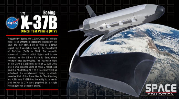 {"id":4191098634318,"title":"1\/72 X-37B Orbital Test Vehicle (OTV)","handle":"1-72-x-37b-orbital-test-vehicle-otv","description":"\u003ch3\u003eDragon Space Collection 50377 - 1\/72 X-37B Orbital Test Vehicle (OTV)\u003c\/h3\u003e\n\u003cp\u003eFeatures:\u003c\/p\u003e\n\u003cul\u003e\n\u003cli\u003e1\/72 true-to-scale precision model\u003c\/li\u003e\n\u003cli\u003eDisplayable die-cast spacecraft with high collectable value\u003c\/li\u003e\n\u003cli\u003eAesthetically pleasing color finish with delicate imprinted markings\u003c\/li\u003e\n\u003cli\u003eElegant metail stand for easy display\u003c\/li\u003e\n\u003c\/ul\u003e\n\u003cp\u003eProduced by Boeing, the X-37B Orbital Test Vehicle (OTV) is an unmanned spaceplane created by the USA. The X-37 started life in 1999 as a NASA project, but it was taken over by the Department of Defense (DoD) in 2004. The reusable spacecraft conducts orbital flights and is now operated by the US Air Force to demonstrate reusable space technologies. The first orbital flight of the USAF's X-37B took place on April 22, 2010 after it was launched using an Atlas V rocket, and landed at Vanderberg AFB on December 3 2010 as scheduled. Its aerodynamic design is clearly based on that of the Space Shuttle. The 8.9m-long and 4.99-tonne X-37B has the ability to remain in orbit for up to 270 days propelled by a single Rocketdyne AR-2\/3 rocket engine.\u003c\/p\u003e","published_at":"2019-10-06T13:18:20+08:00","created_at":"2019-10-06T13:19:51+08:00","vendor":"Dragon","type":"Spacecraft","tags":["1\/72","Brand_Dragon","Completed Models","Dragon","Scale Models","Scale_1\/72","Series_Spacecraft","Spacecraft","Status_In-Stock"],"price":29800,"price_min":29800,"price_max":29800,"available":false,"price_varies":false,"compare_at_price":null,"compare_at_price_min":0,"compare_at_price_max":0,"compare_at_price_varies":false,"variants":[{"id":30373880594510,"title":"Default Title","option1":"Default Title","option2":null,"option3":null,"sku":"DR50377","requires_shipping":true,"taxable":true,"featured_image":null,"available":false,"name":"1\/72 X-37B Orbital Test Vehicle (OTV)","public_title":null,"options":["Default Title"],"price":29800,"weight":1000,"compare_at_price":null,"inventory_management":"shopify","barcode":"","requires_selling_plan":false,"selling_plan_allocations":[]}],"images":["\/\/www.cyber-hobby.com\/cdn\/shop\/products\/DR50377.jpg?v=1570339194"],"featured_image":"\/\/www.cyber-hobby.com\/cdn\/shop\/products\/DR50377.jpg?v=1570339194","options":["Title"],"media":[{"alt":null,"id":2217364389966,"position":1,"preview_image":{"aspect_ratio":1.807,"height":498,"width":900,"src":"\/\/www.cyber-hobby.com\/cdn\/shop\/products\/DR50377.jpg?v=1570339194"},"aspect_ratio":1.807,"height":498,"media_type":"image","src":"\/\/www.cyber-hobby.com\/cdn\/shop\/products\/DR50377.jpg?v=1570339194","width":900}],"requires_selling_plan":false,"selling_plan_groups":[],"content":"\u003ch3\u003eDragon Space Collection 50377 - 1\/72 X-37B Orbital Test Vehicle (OTV)\u003c\/h3\u003e\n\u003cp\u003eFeatures:\u003c\/p\u003e\n\u003cul\u003e\n\u003cli\u003e1\/72 true-to-scale precision model\u003c\/li\u003e\n\u003cli\u003eDisplayable die-cast spacecraft with high collectable value\u003c\/li\u003e\n\u003cli\u003eAesthetically pleasing color finish with delicate imprinted markings\u003c\/li\u003e\n\u003cli\u003eElegant metail stand for easy display\u003c\/li\u003e\n\u003c\/ul\u003e\n\u003cp\u003eProduced by Boeing, the X-37B Orbital Test Vehicle (OTV) is an unmanned spaceplane created by the USA. The X-37 started life in 1999 as a NASA project, but it was taken over by the Department of Defense (DoD) in 2004. The reusable spacecraft conducts orbital flights and is now operated by the US Air Force to demonstrate reusable space technologies. The first orbital flight of the USAF's X-37B took place on April 22, 2010 after it was launched using an Atlas V rocket, and landed at Vanderberg AFB on December 3 2010 as scheduled. Its aerodynamic design is clearly based on that of the Space Shuttle. The 8.9m-long and 4.99-tonne X-37B has the ability to remain in orbit for up to 270 days propelled by a single Rocketdyne AR-2\/3 rocket engine.\u003c\/p\u003e"}